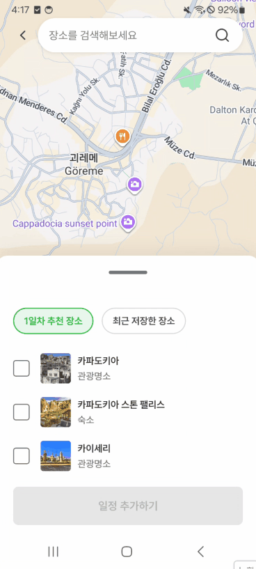 프로젝트를 진행하면서 다음과 같이 3가지 이상의 상태를 가지는 다양한 바텀시트를 구현해야 했다. 유의할점은 모든 바텀시트에 하단에 "일정 추가하기" 버튼이 존재해야 한다는 것이다.